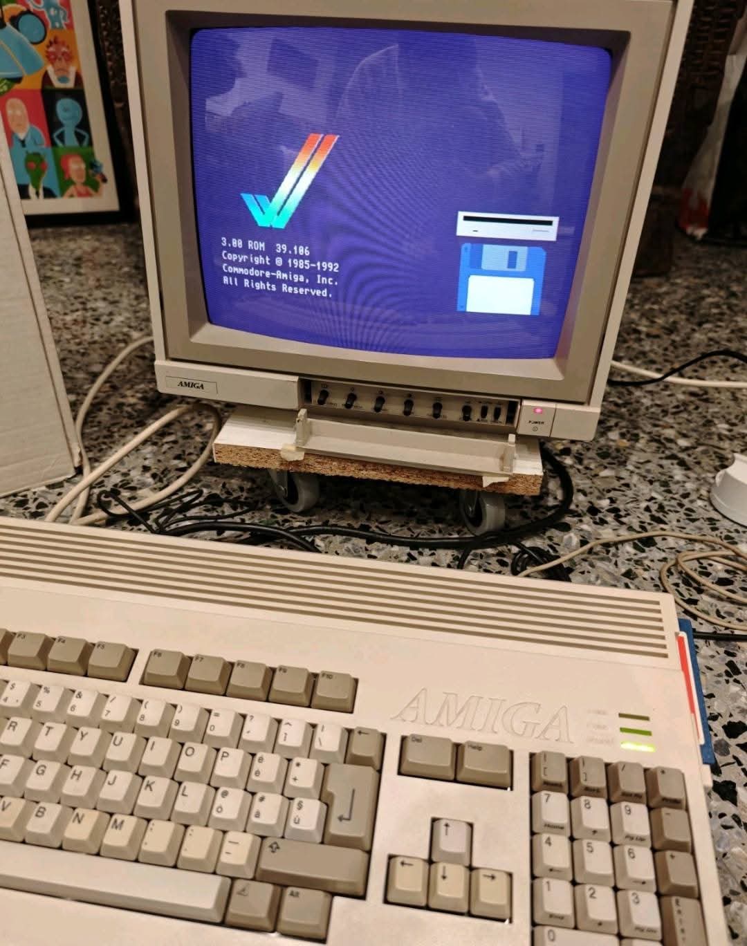 The Amiga 1200, or A1200 (code-named "Channel Z"), is a personal computer in the Amiga computer family released by Commodore International, aimed at the home computer market. It was launched on October 21, 1992, at a base price of £399 in the United Kingdom (equivalent to £1,040 in 2023) and $599 in the United States (equivalent to $1,340 in 2024). The A1200 was launched a few months after the Amiga 600, using a similar slimline design that replaced the earlier Amiga 500 Plus and Amiga 500. Whereas the A600 used the 16-bit Motorola 68000 of earlier Amigas, the A1200 was built around the 32-bit Motorola 68EC020. Physically, the A1200 is an all-in-one design incorporating the CPU, keyboard, and disk drives (including the option of an internal 2.5" hard disk drive) in one physical unit. The A1200's hardware architecture was later used as the basis for Commodore's Amiga CD32 game console in 1993.