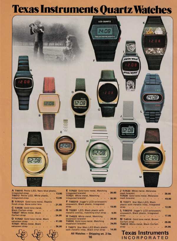 Texas Instruments (TI) shook up the digital watch world in 1976 with a real market bombshell — the first LED watch priced under $20! And they didn’t stop there: the following year, they jumped on the Star Wars craze, releasing themed LED watches for just $16.95 — a treat for fans and a blow to the competition. Prices kept falling, and before long, it was a bloodbath: several high-end digital watchmakers were forced to shut down. Ironically, TI itself got crushed by its own success — with profit margins shrinking fast, they bowed out of the watch game by 1980. By then, those once-shiny digital watches had become cheap, everyday gadgets for the masses.