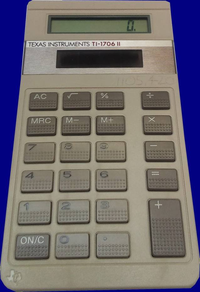 Model: TI-1706 IIBattery: 2 x solarAdapter: Year: 1985Chip: Info: LCD 1980 - 1984
