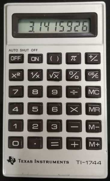 Model: TI-1744Battery: 2 x LR43Adapter: Year: 1982Chip: NEC uPD1831GInfo: Made in Taiwan