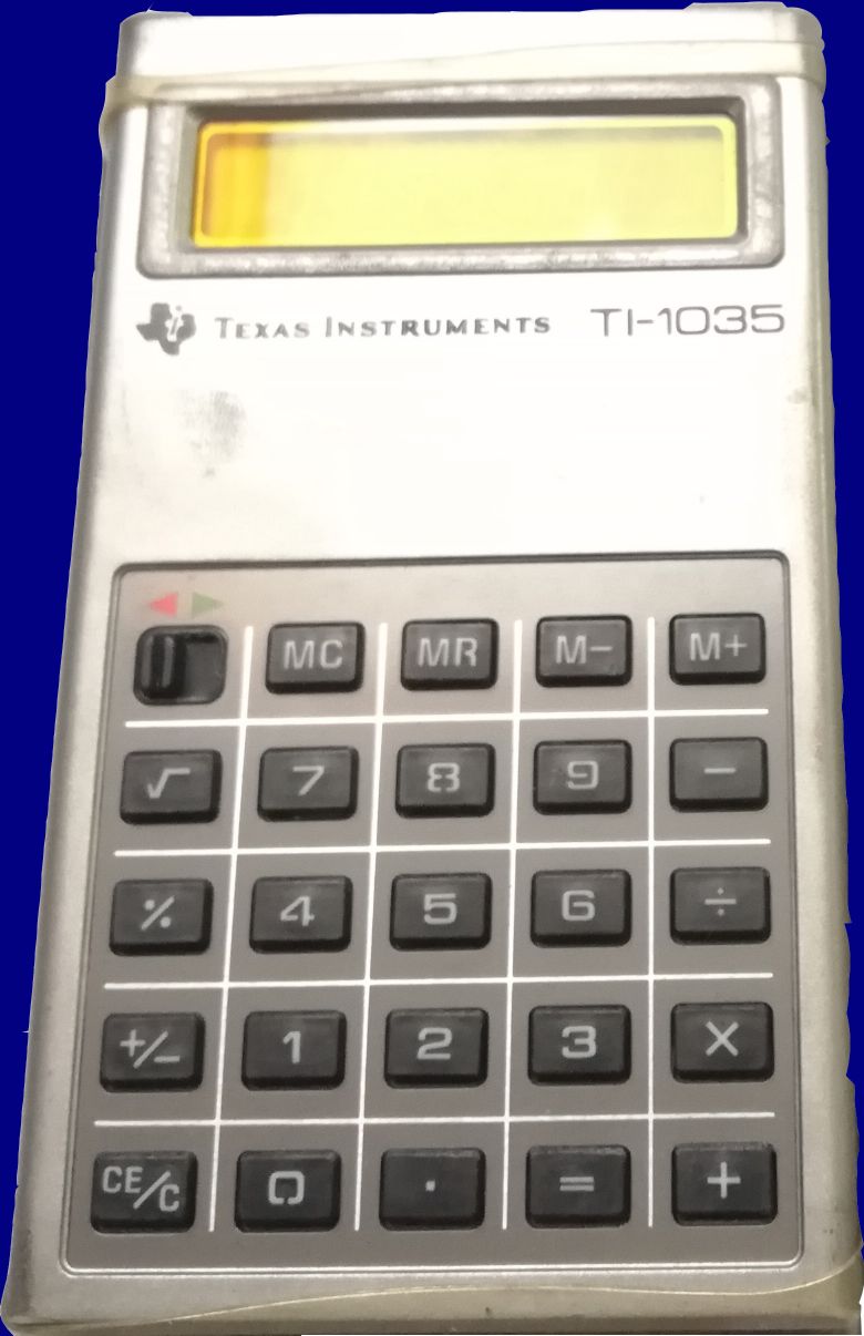 Model: TI-1035Battery: 2 x LR44Adapter: Year: 1979Chip: Toshiba T3703 Info:first TI-LCD - yellow LCD