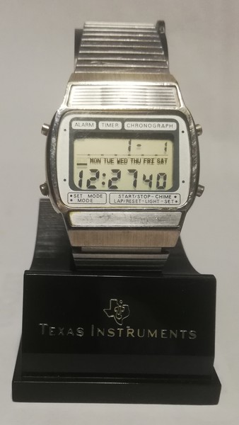 Info:Eleven-function wrist instrument shows constant display of hours, minutes, seconds, date and day of week, contdown/timer and chronograph with 1/100th second accuracy. Backlight / code ok. (? TI-8531-08)