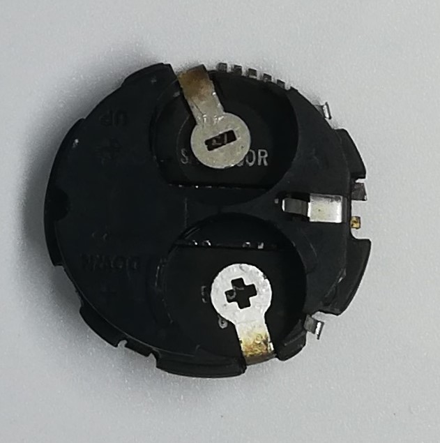 Here you can see the particular contact that is used by the button when pressed. Two buttons are used: the one on the top right to display hours, minutes, seconds, day and month, the one on the bottom right to set the hour, minutes, day and month.