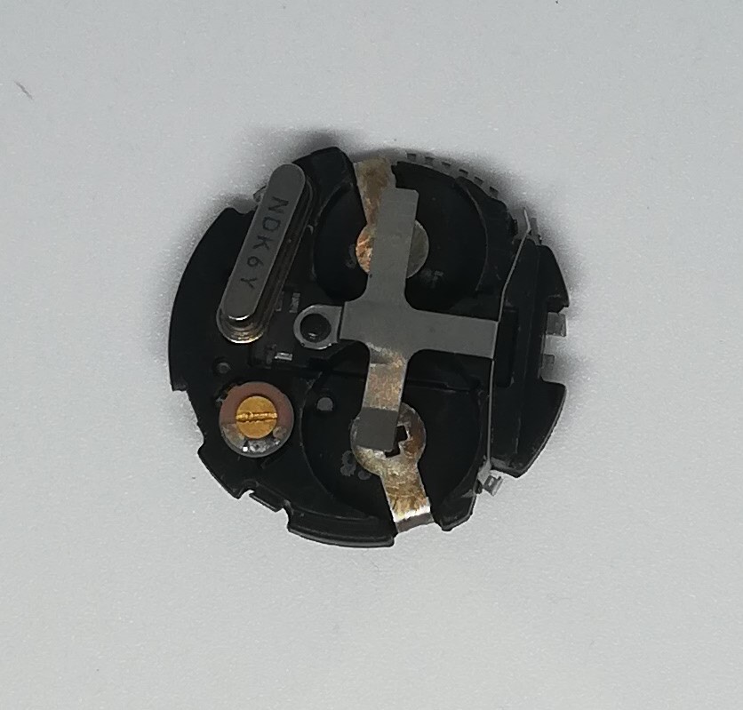 Here you can see the particular contact that is used by the button when pressed. Two buttons are used: the one on the top right to display hours, minutes, seconds, day and month, the one on the bottom right to set the hour, minutes, day and month.