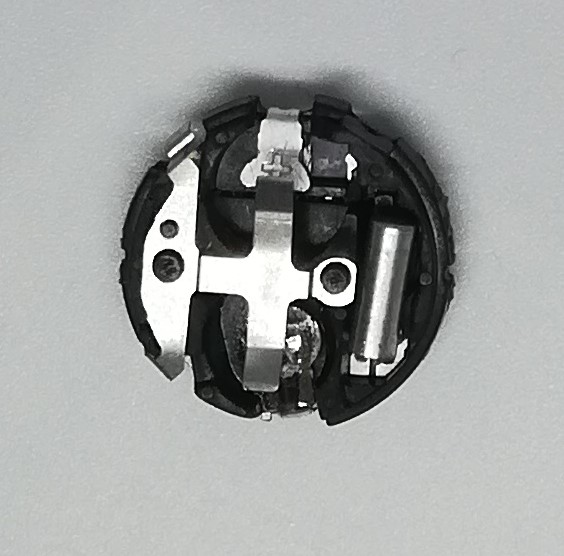 Here you can see the particular contact that is used by the button when pressed. Two buttons are used: the one on the top right to display hours, minutes, seconds, day and month, the one on the bottom right to set the hour, minutes, day and month.